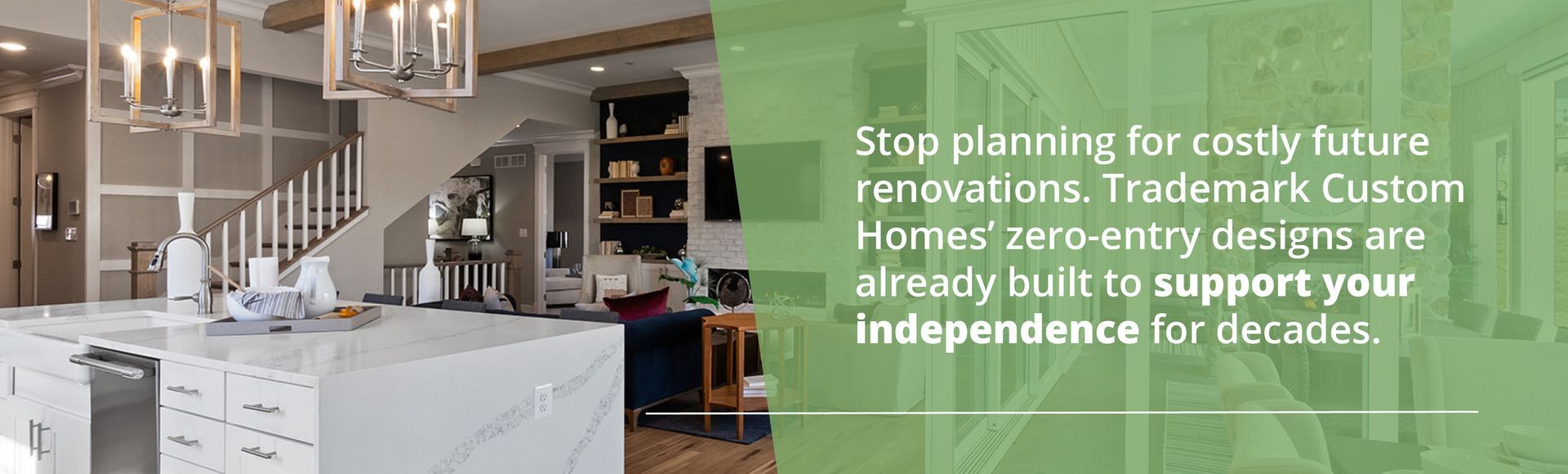 Homes with aging-in-place design don’t look or feel different; they simply work better over time. At Trademark, our single-level plans are designed from day one to be Universal Design homes, ensuring high-end functionality is baked into the blueprint.